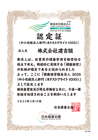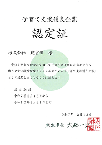 株式会社建吉組は「女性活躍推進法」及び「次世代育成支援対策推進法」に基づき「一般事業主行動計画」を公表します。
