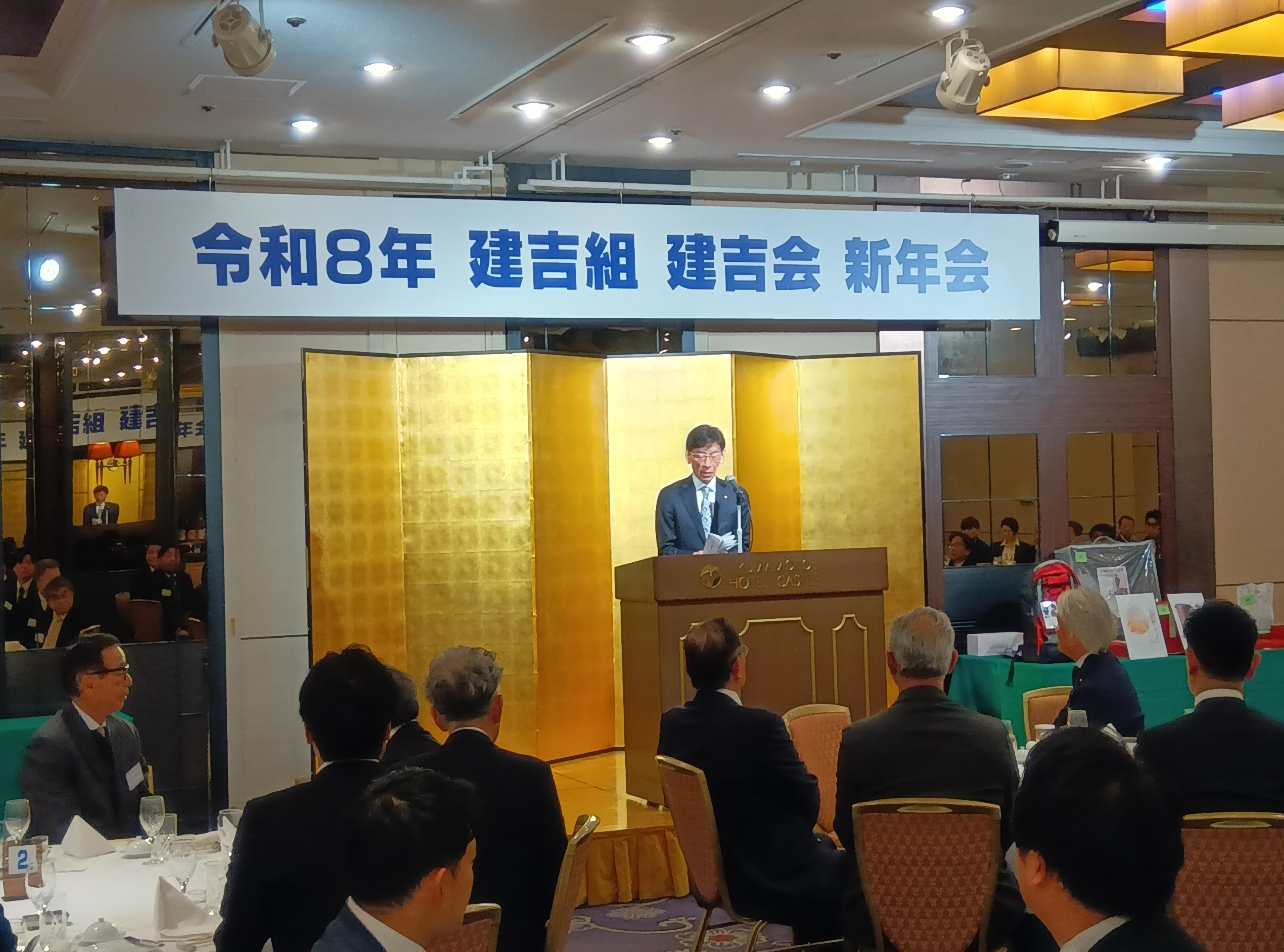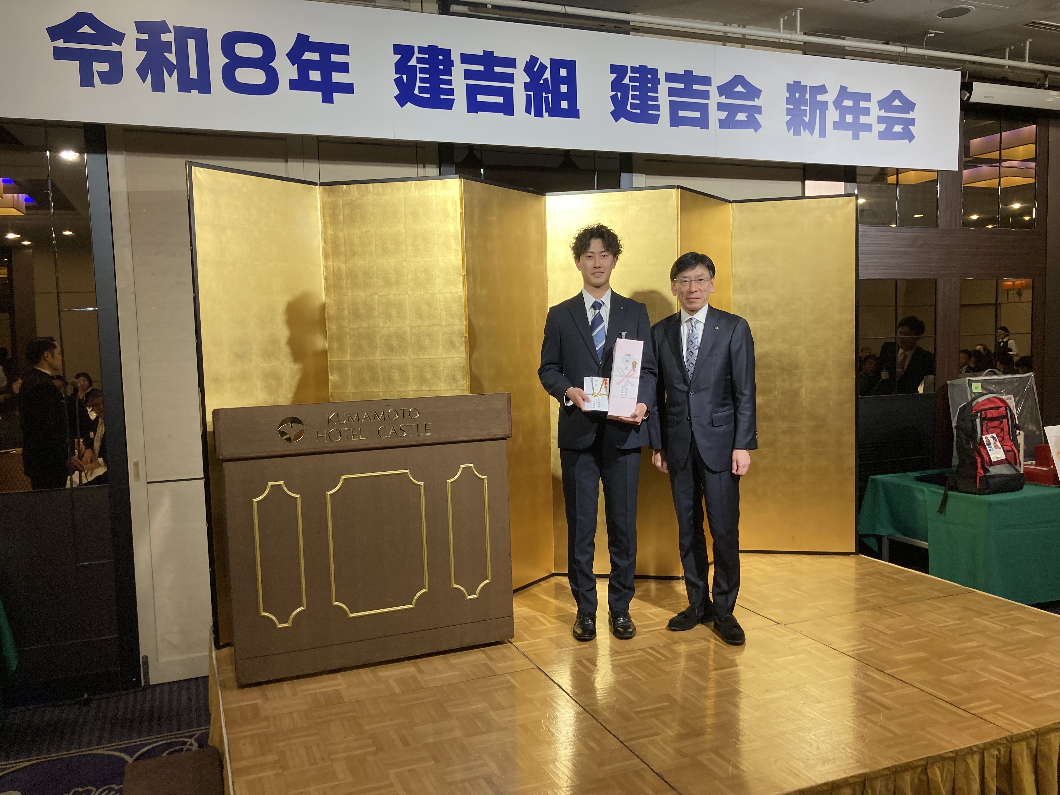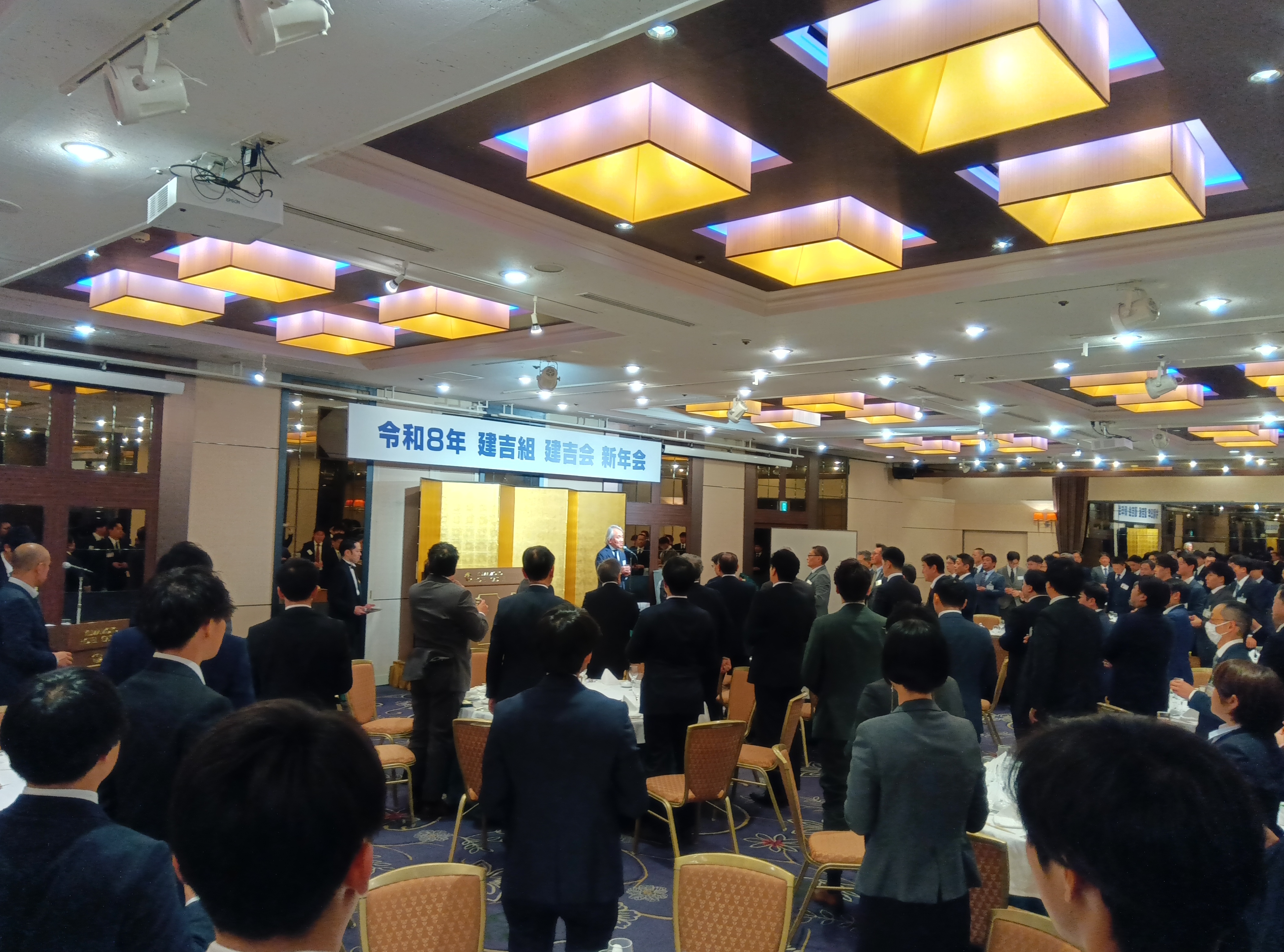 2026年 01月 06日 令和8年 建吉組・建吉会 新年会 お知らせ 2026年1月4日 令和8年 建吉組・建吉会 新年会を熊本ホテルキャッスルにて開催しました。 社員と協力会が集まり、昨年の振り返りと新しい年の目標を共有しながら、和やかな雰囲気の中で親睦を深めることができました。 今年成人を迎えた社員のお祝いも行い、節目を迎えた仲間を皆で祝福しました。本年も「安全・品質・信頼」を第一に、より一層のサービス向上に努めてまいります。引き続きご支援・ご愛顧のほどよろしくお願い申し上げます。 一覧へ戻る 前の記事へ 次の記事へ