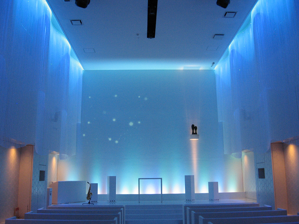 大規模修繕・リニューアル・省エネ改修熊本市中央区出水 Wグランラセーレ熊本 チャペル 竣工 2013/12 所在地 熊本市中央区出水 設計 (有)田中英介建築デザイン事務所 備考 工事名:Wグランラセーレ熊本チャペル壁クロス、ストリングカーテン設置その他工事